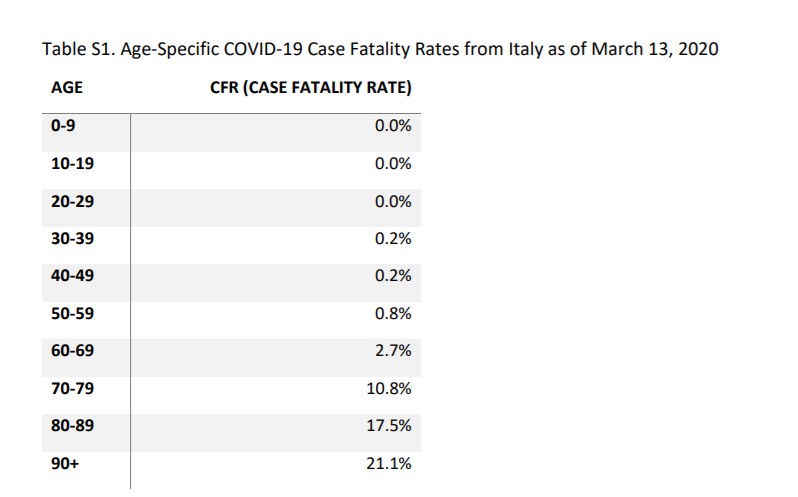 Instituto Superiore di Sanità, Age specific mortality rates COVID-19 (2020) (March 13,2020).