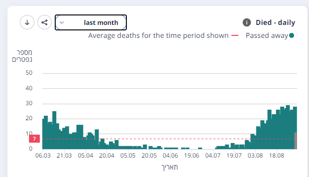 Απ ότι βλέπω το Ισραήλ στις 31 Αυγούστου είχε 4800 κρούσματα και 0 θανάτους. Την προηγούμενη ημέρα είχε 39 θανάτους και στις 28 Αυγούστου 3.