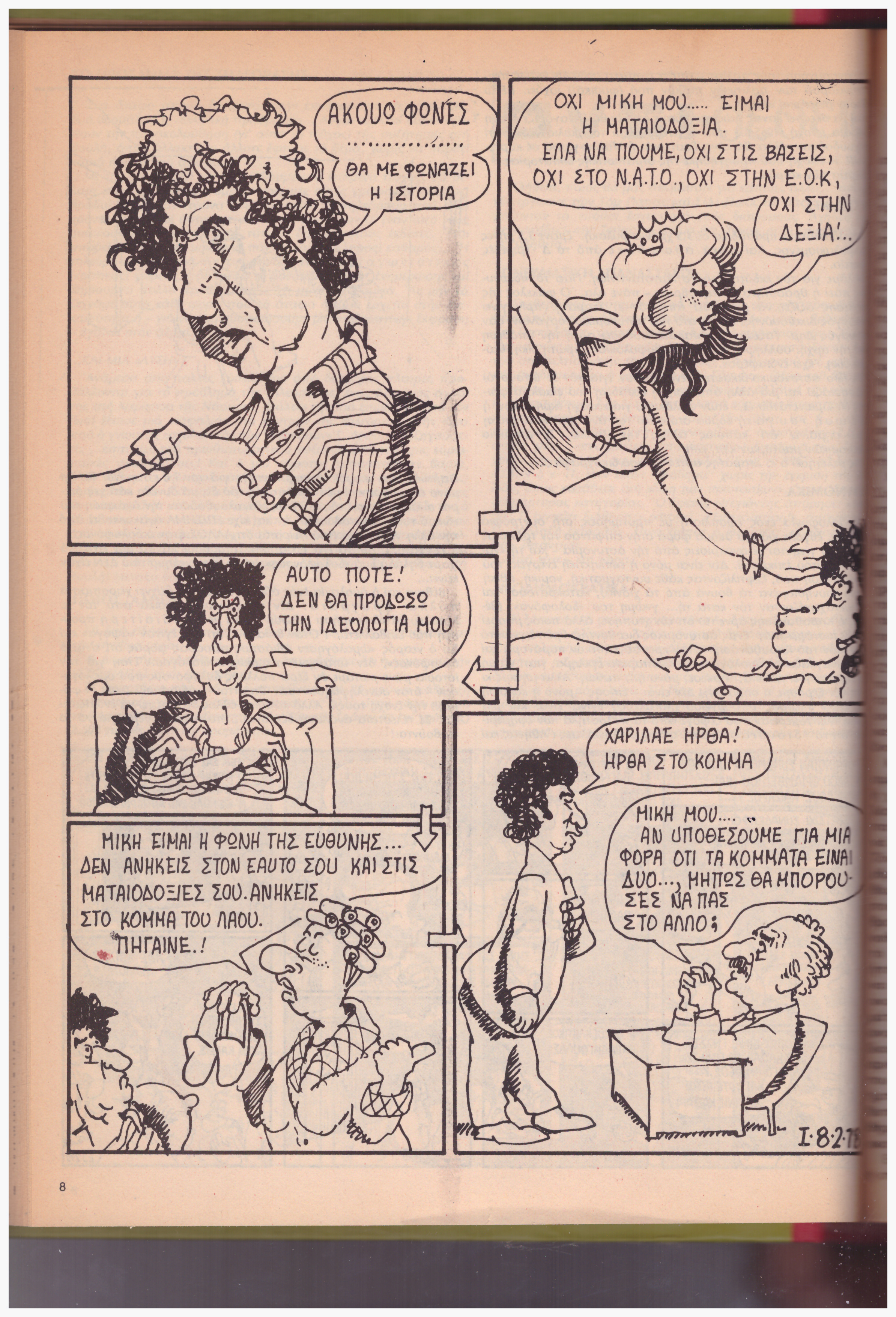 "δεν επέστρεψε" γιατί δε θεώρησε ποτέ ότι είχε φύγει από εκεί. Συνεχώς αυτό έλεγε. Εγώ μαζί τους είμαι, αυτοί δε με φωνάζουν. Το είχε περιγράψει καλύτερα όλων ο μέγας Γιάννης Ιωάννου σε αυτό το σκίτσο του '78.