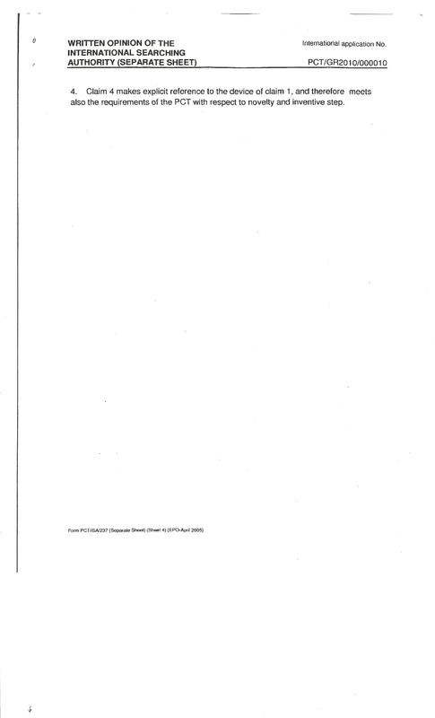 Η αξίωση 4 κάνει ρητή αναφορά στη συσκευή της αξίωσης 1 και συνεπώς ικανοποιεί επίσης τις απαιτήσεις του PTC σε σχέση με το καινοτόμο και εφευρετικό στάδιο.
