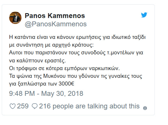 Δεν ξερω αν καταλαβες αλλα ο Καμμενος στις ερωτησεις για το ταξιδι του στο Μονακο απαντησε "οι γυναικες σας ειναι πουτανες και εσεις πουστηδες".