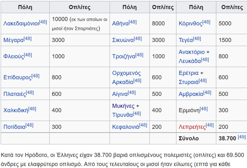 Οι υπόλοιποι αναφέρονται κάτω από τον πίνακα: 69.500, οι μισοί Είλωτες!Chainis έγραψε: 23 Ιουν 2018, 21:46Αυτοί ήταν οι βαριά οπλισμένοι (οπλίτες), είχε και άλλους τόσους τουλάχιστον με ελαφρύ οπλισμό.