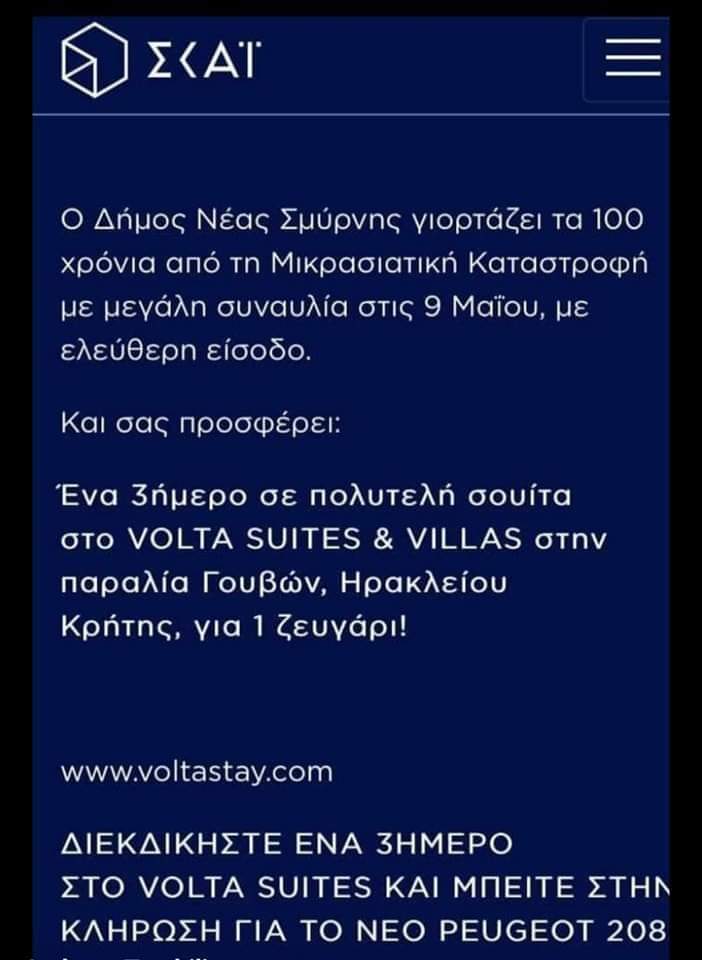Σύμφωνα με τον σκαι, ο δήμος γιορτάζει τα 100 χρόνια από το προφανώς χαρμόσυνο γεγονός της μικρασιατικής καταστροφής