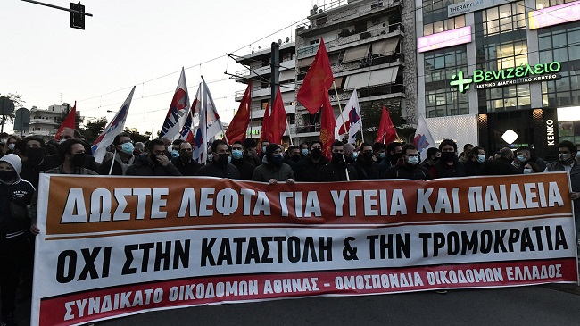 Η κυβέρνηση, υπογραμμίζει, «εφαρμόζοντας έναν άναρχο σχεδιασμό αντιμετώπισης της πανδημίας, επανέρχεται με τροποποιημένη την αρχική της απόφαση κάτω από την πίεση των μεγαλοεργολάβων και των προμηθευτών, ώστε να επιτρέψει όλες τις οικοδομικές εργασίες στις περιοχές αυξημένου επιδημιολογικού κινδύνου, δίχως να φροντίσει πρώτα για την λήψη των απαραίτητων μέτρων προστασίας της υγείας των εργαζομένων στις κατασκευές, την διενέργεια δειγματοληπτικών ελέγχων ανίχνευσης του ιού, την εφαρμογή και χρήση των απαραίτητων μέτρων προστασίας στους χώρους δουλειάς για την αποφυγή εργατικών ατυχημάτων».
