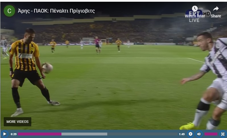 Εν τω μεταξυ το χερι κλεινει πριν να ακουμπησει την μπαλα ειναι ξεκαθαρη η μη προθεση να την σταματησει με το χερι