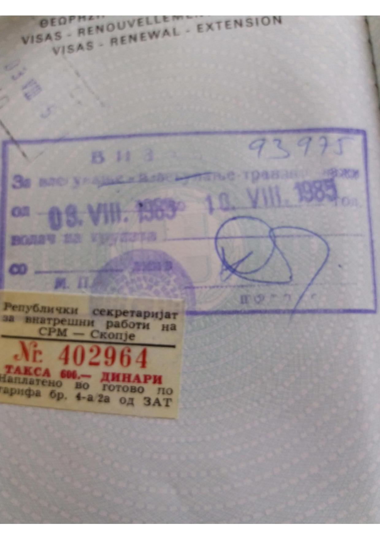 Η στρογγυλή σφραγίδα είναι ακριβώς ίδια με άλλη που έχω στην επιστροφή, όταν μπήκα στην Γιουγκοσλαβία από Ιταλία.