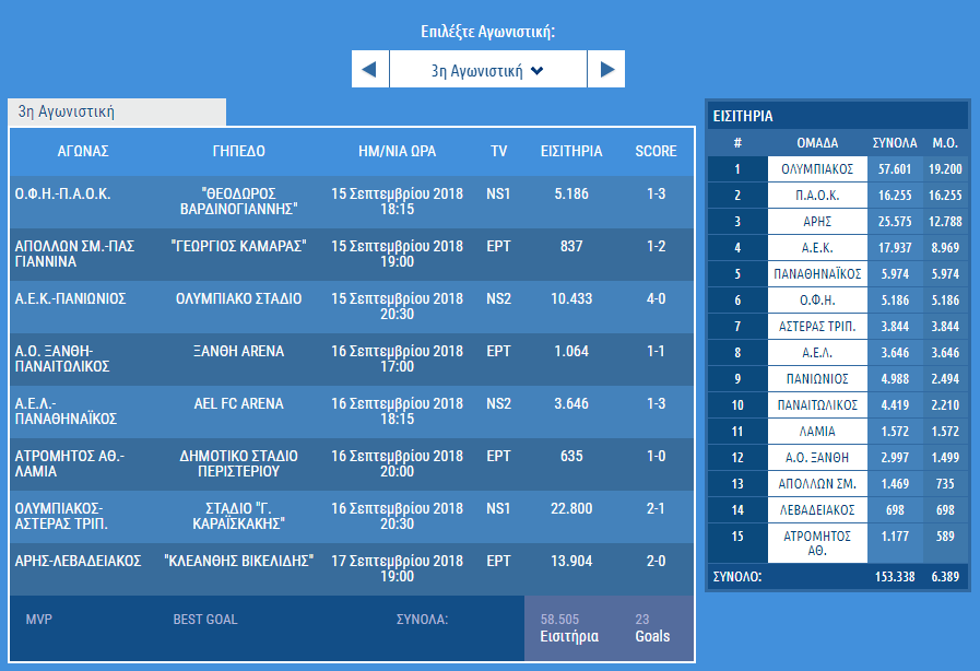Βγηκαν και τα στοιχεια για τα εισητηρια της 3ης αγωνιστικης