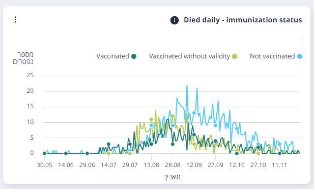 Επιπλέον, από τα μέσα Οκτωβρίου το κύμα έχει ανακοπεί. Αρα, το γεγονός ότι τώρα στο Ισραήλ έχει κάνει τρίτη δόση το 42% του πληθυσμού, δεν έχει σχέση με τους θανάτους που σημειώθηκαν.