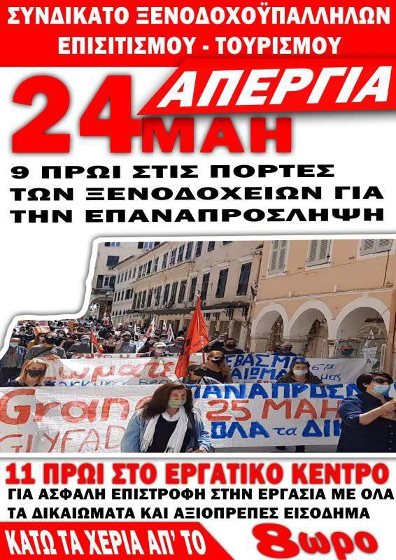 Χρειάζεται σήμερα ανυποχώρητος αγώνας για να μην επιτρέψουμε σε κανένα να μας μετατρέψει σε επαίτες για ένα πιάτο φαΐ. Να αποκαλύψουμε τα τεράστια ψέματα της κυβέρνησης και των ομοϊδεατών της, για "προστασία, πρόοδο και ανάπτυξη". Να σταματήσει να μπουκώνει με εκατομμύρια τους μεγαλοξενοδόχους στο όνομα της ανάπτυξης και να πάρει μέτρα ώστε κανένας ξενοδοχοϋπάλληλος άνεργος να μη μείνει απροστάτευτος».