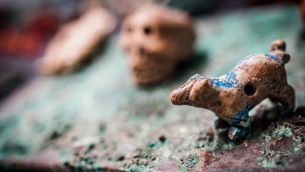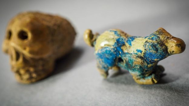 Είναι το περιεχόμενο σε ό,τι απέμεινε από ένα ξύλινο και μεταλλικό σκρίνιο, γεμάτο φυλακτά και ημιπολύτιμους λίθους, με κουκλάκια και κουδουνάκια, αλλά και πήλινα αντικείμενα: φαλλούς, κλειστές γροθιές κι ένα μικρό κρανίο.
