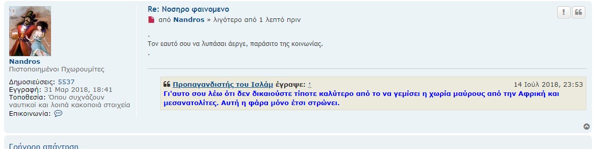 μην σε εκπλήσσει. σου μιλάω ευγενικά διότι (προσπαθώ να) σέβομαι τους μοντς - όχι επειδή σου αξίζειΓΙΑΝΝΗΣ ΓΙΑΝΝΟΠΟΥΛΟΣ έγραψε: 11 Νοέμ 2018, 13:09Μετα απο σωρεια υβριστικων και προσβλητικων σου μηνυματων που διαγραφηκαν εχουμε αυτοΔεν Είμαι Φασίστας" post_