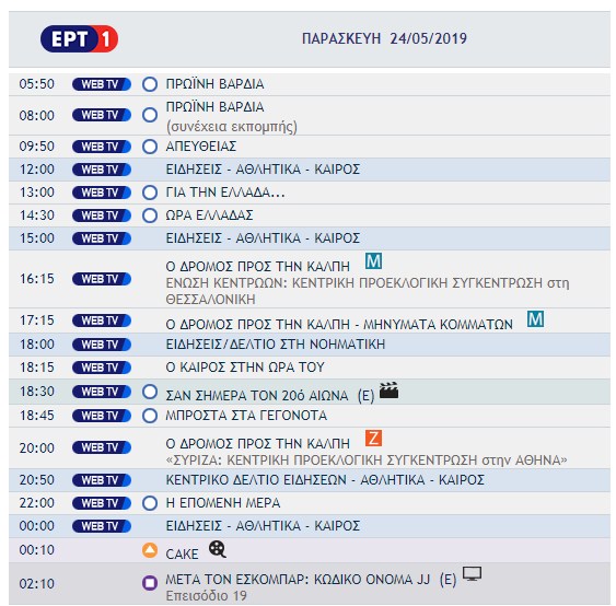 Μια ματια στο προγραμμα της ΕΡΤ1