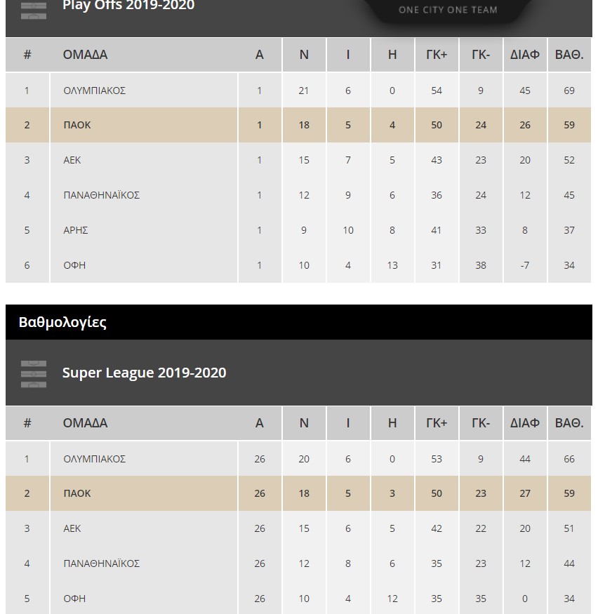 Η βαθμολογια ειναι κατ ουσιαν επισημο εγγραφο που επικυρωνεται απ την Σουπερ Λιγκ και την ΕΠΟ